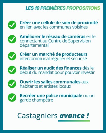 Retrouvez ici les 10 premières propositions de campagne de notre liste Castagniers Avance !