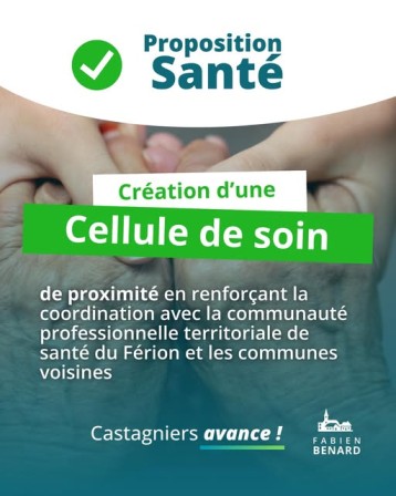 En lien avec la CPTS du Férion, nous renforcerons leur présence sur notre commune en créant une cellule de soins de proximité.