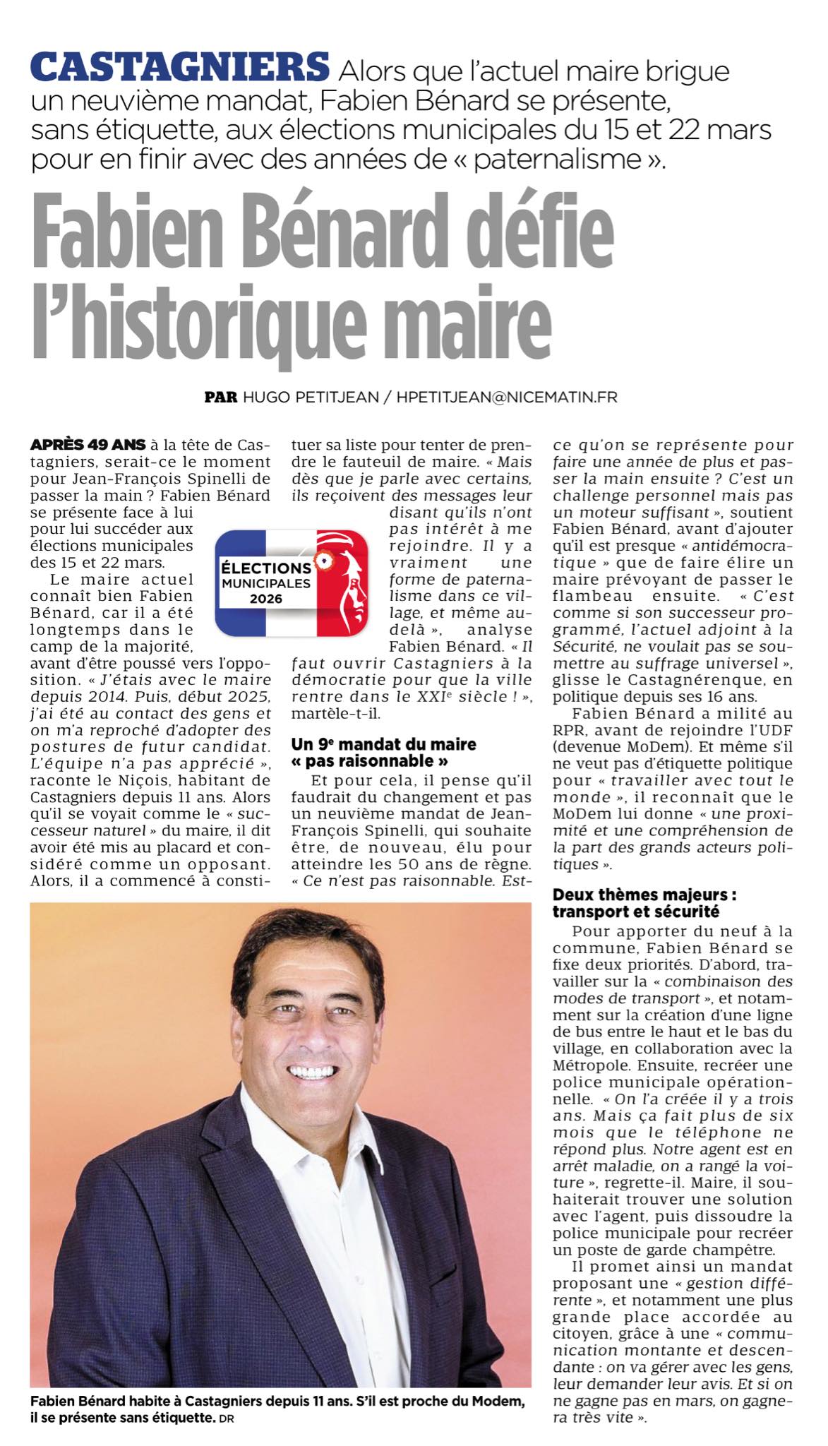 Interview donné à FR3 CÔTE D'AZUR le 22 janvier 2026 et à Nice-Matin le 06 janvier 2026.